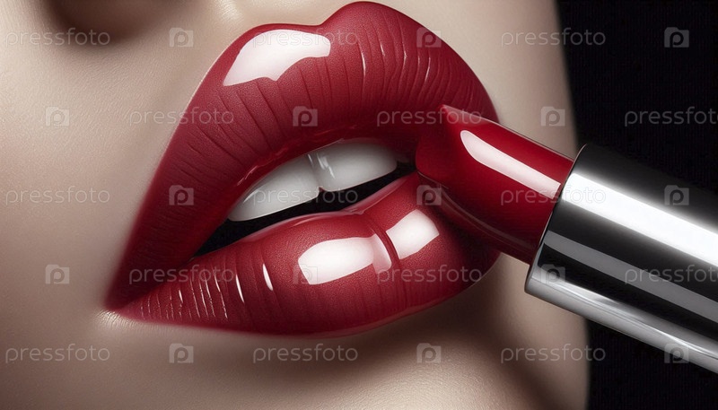 Экстремальное макро женских губ, пуля из помады, следящая за луком Купидоса на белом фоне, Ай создала образ