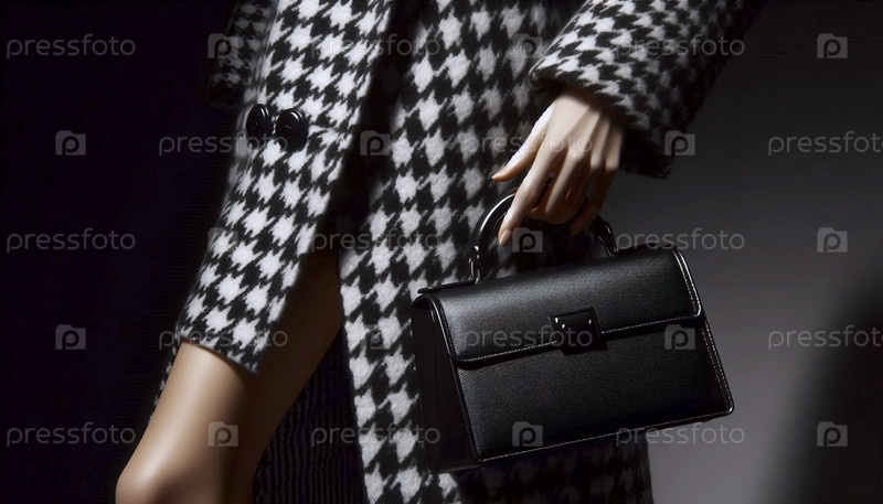 Структурированная кожаная сумочка, которую держит рука, выходящая из рукава куртки Houndstooth, Ai generated image
