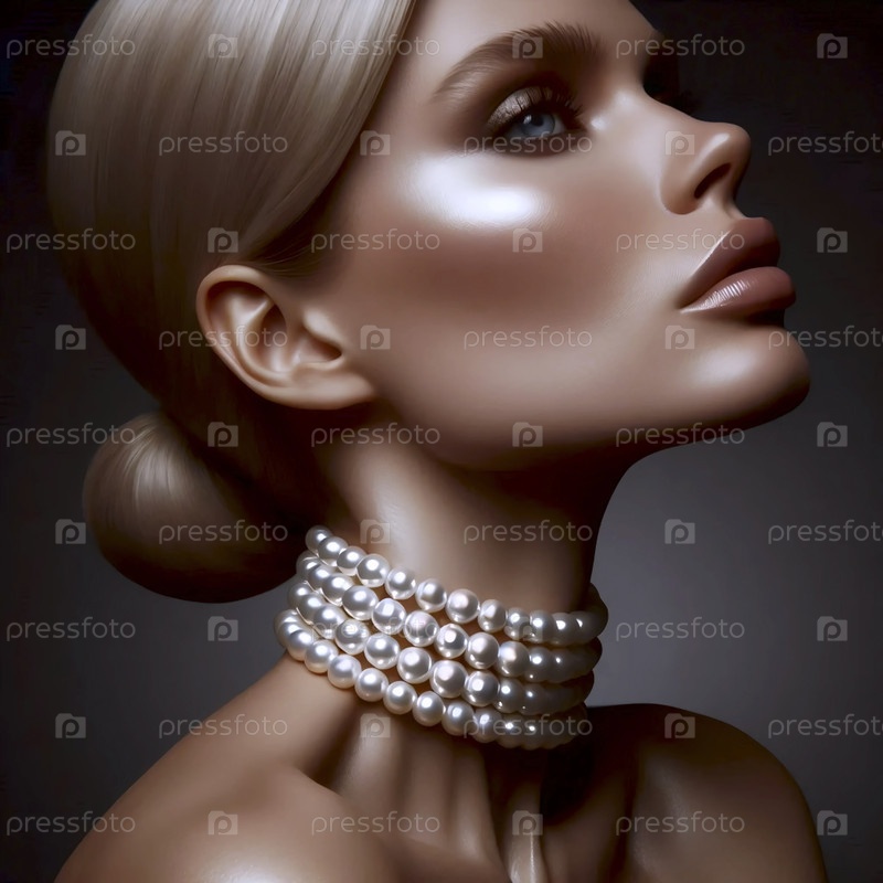 Шейка модели украшена тройной нитью из жемчуга, отвратительный взгляд, Ай создал образ