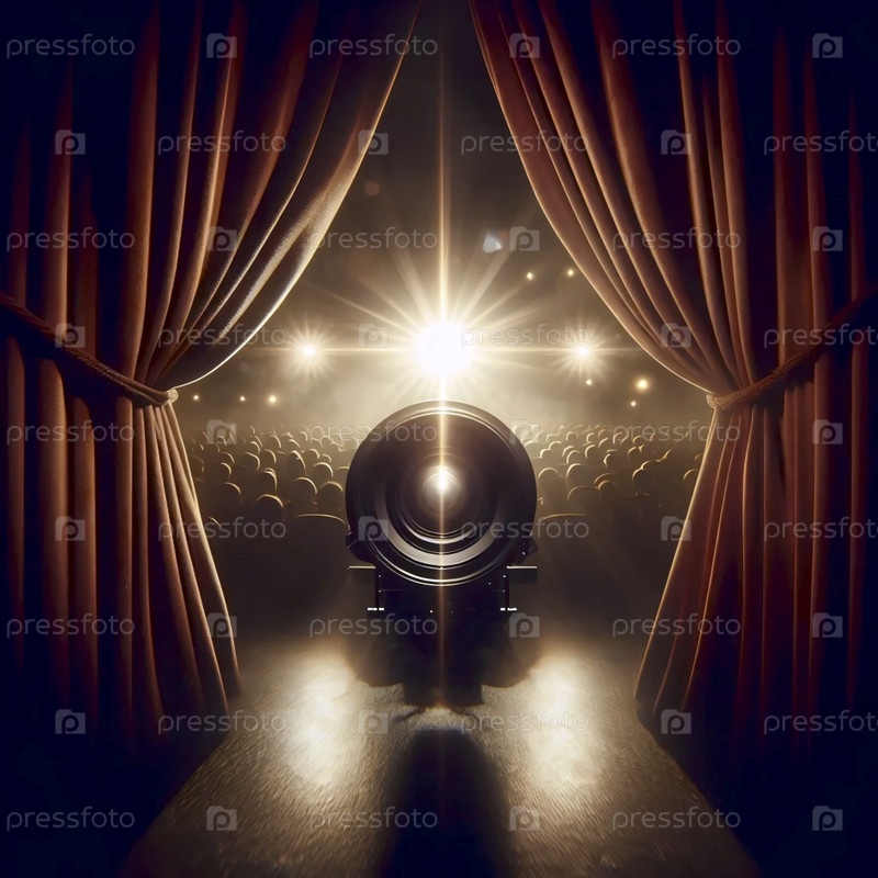 В тот момент, когда на сцене поднимается занавес, видимый сзади и раскрывающий ослепительные огни сцены и силуэт аудитории, Ай создает изображение