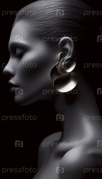 Профиль женского уха с большой, скульптурной золотой серёжкой на черном фоне Ai generated image