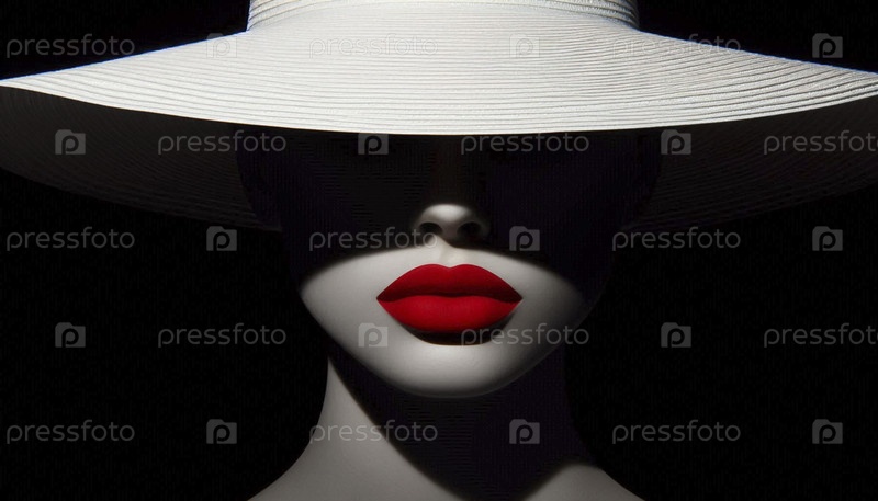Широкошерстная шляпа, бросающая глубокую тень на лицо модели, видны только ее красные губы, Ai generated image