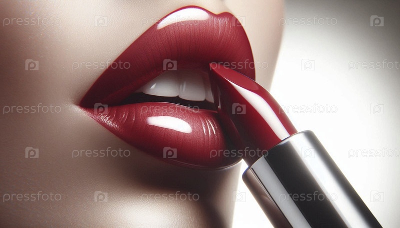 Экстремальное макро женских губ, пуля из помады, следящая за луком Купидоса на белом фоне, Ай создала образ
