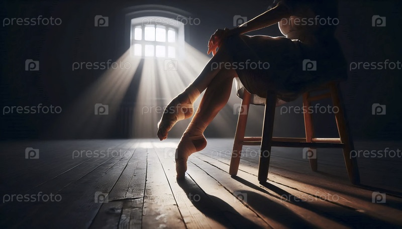 Ноги балерины-пенсионера, обвязанные и лежащие на стуле в темной репетиционной комнате Ай создали образ