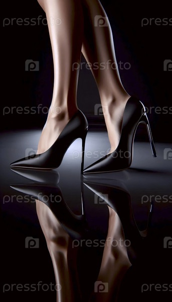 Пара наконечных пальцев на ногах модели, отражающаяся в глянцевом черном полу, Ai создала изображение