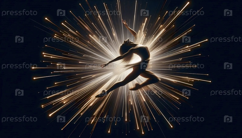 Танцовщица прыгает горизонтально через чистую черную пустоту, тело освещается как комета, Ai generated image