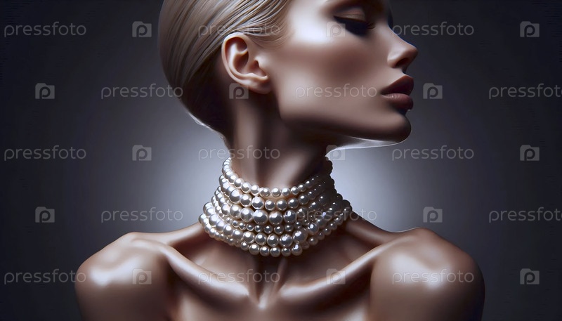 Шейка модели украшена тройной нитью из жемчуга, отвратительный взгляд, Ай создал образ