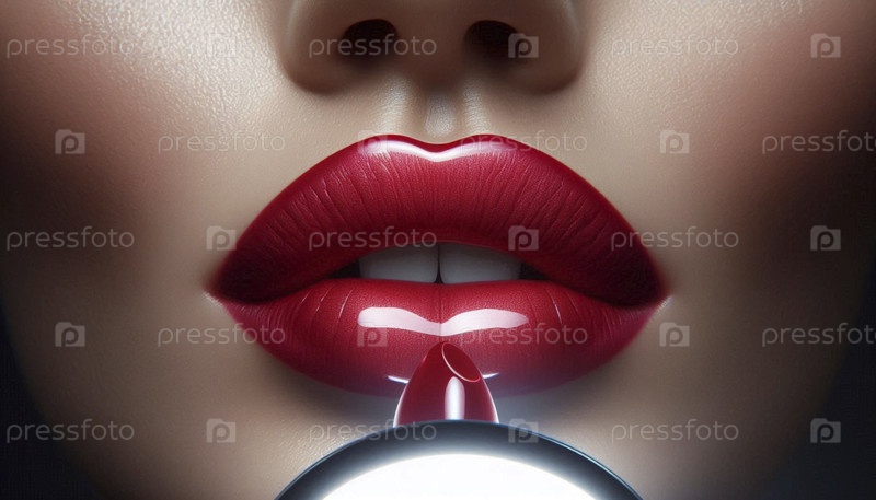 Экстремальное макро женских губ, пуля из помады, следящая за луком Купидоса на белом фоне, Ай создала образ