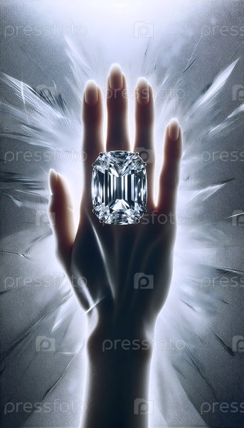 Одно массивное кольцо коктейля на пальце модели, ее рука прижата к стеклу, Ай создала изображение