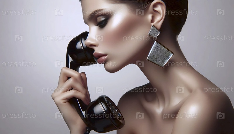 Ближайший план уха модели, к которому прикреплен телефонный приемник, демонстрирующий ослепительную серьгу, Ai создал изображение