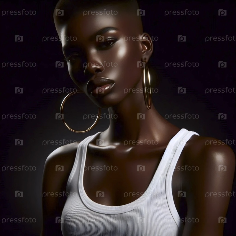 Современный певец с бледной стрижкой и обручальными серьгами, в простом танковом топе, освещение в стиле Hurrell, Ai generated image