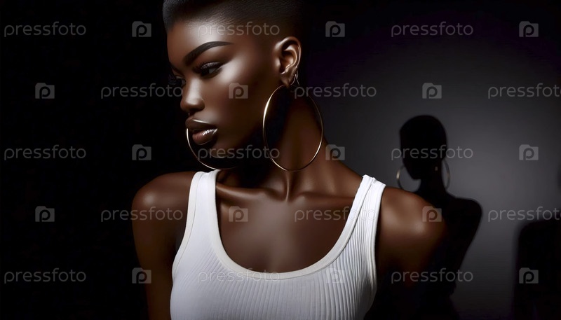 Современный певец с бледной стрижкой и обручальными серьгами, в простом танковом топе, освещение в стиле Hurrell, Ai generated image