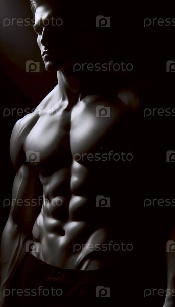 Исследование мужского туловища, освещенное как картина Караваджо, мышцы определены тенью, Ai generated image