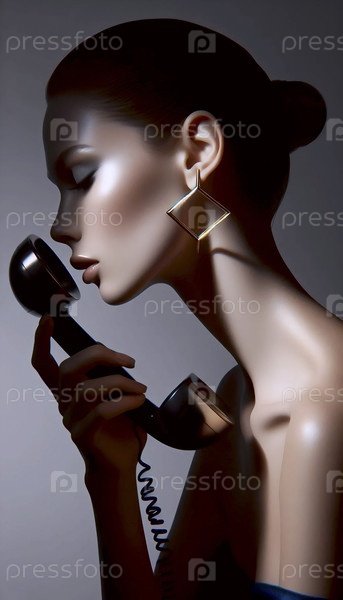 Ближайший план уха модели, к которому прикреплен телефонный приемник, демонстрирующий ослепительную серьгу, Ai создал изображение
