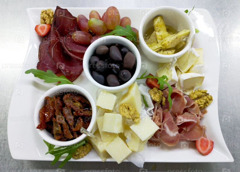 Антипасто - вкусный закуска с вином: черные оливки, элитные сорта сыра, варенье и простуто. здоровая и питательная еда. отличный аппетит для аперитива