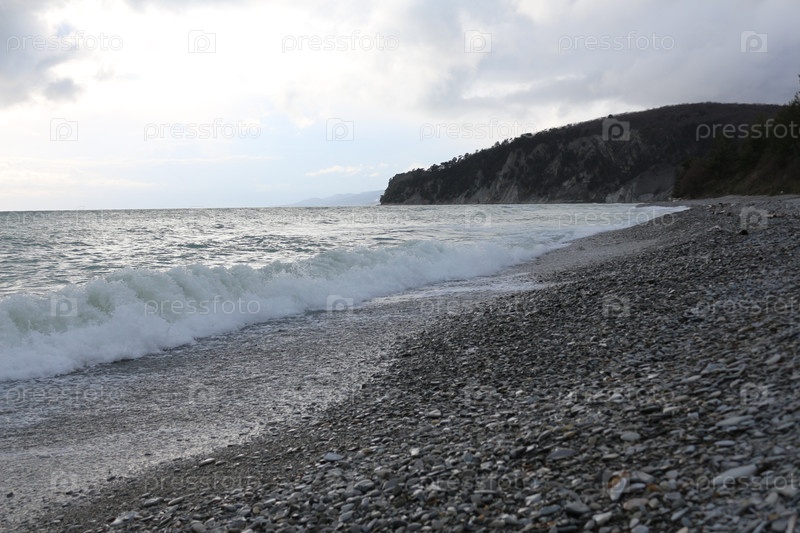 Горы и галечный пляж Черного моря / Mountains and pebble beach of the Black Sea