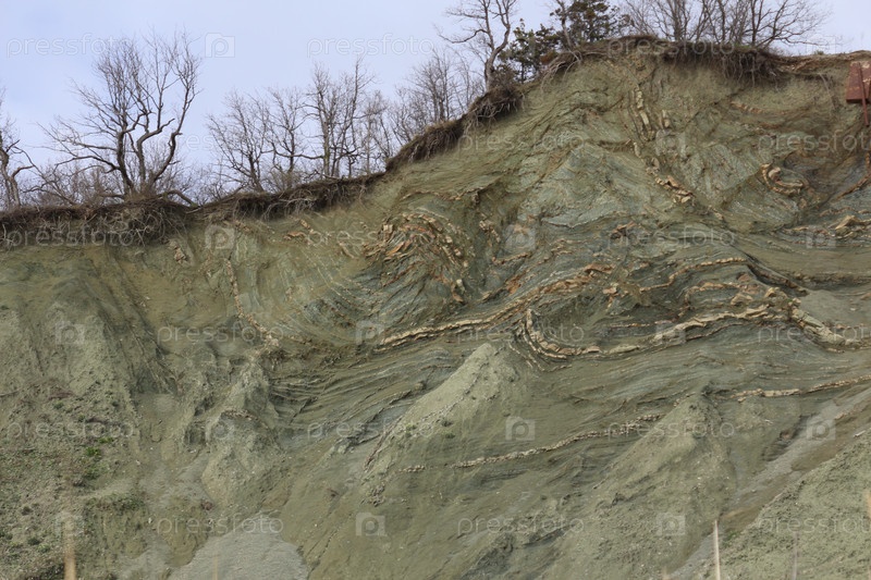 Горный склон с голубой глиной в бухте Инал / Mountain slope with blue clay in Inal Bay