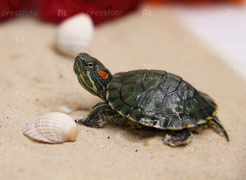 Красноухая черепаха на песке