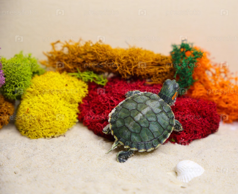 Красноухая черепаха на песке