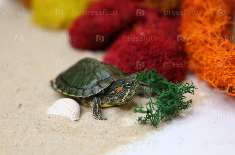 Красноухая черепаха на песке