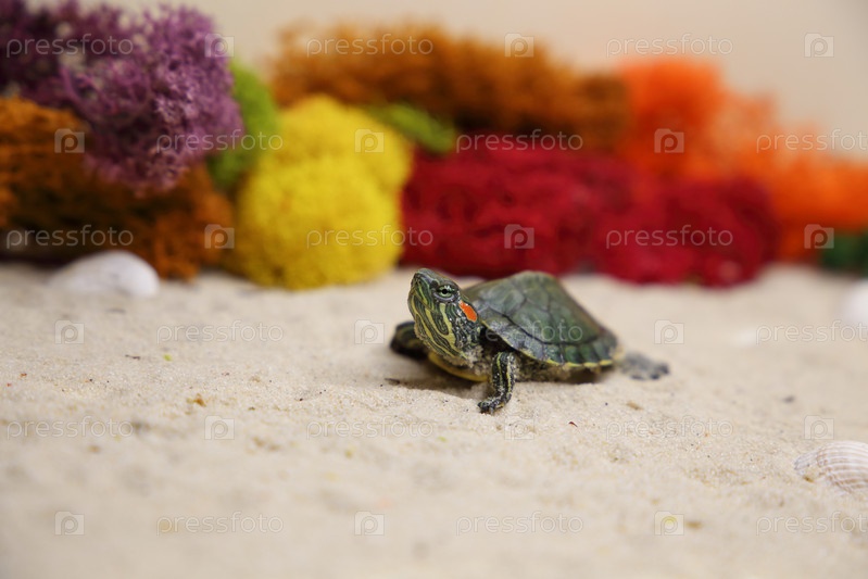 Красноухая черепаха на песке