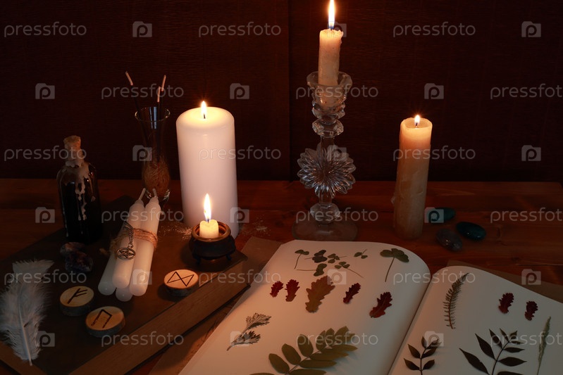 Магический ритуал с рунами и свечами