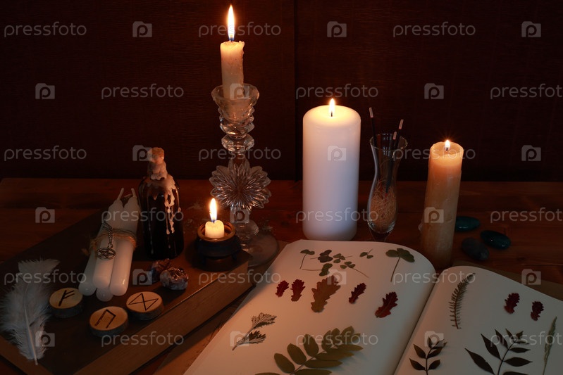 Магический ритуал с рунами и свечами