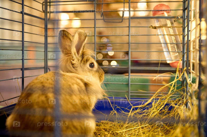 Кролик в клетке с соломой