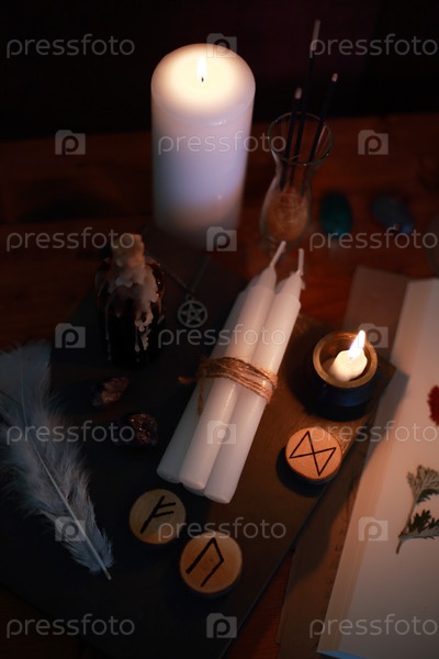Магический ритуал с рунами и свечами