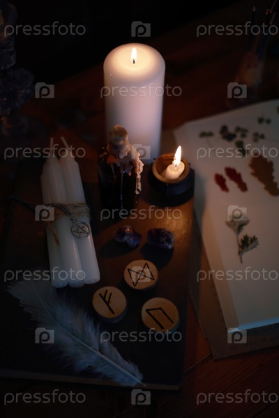 Магический ритуал с рунами и свечами