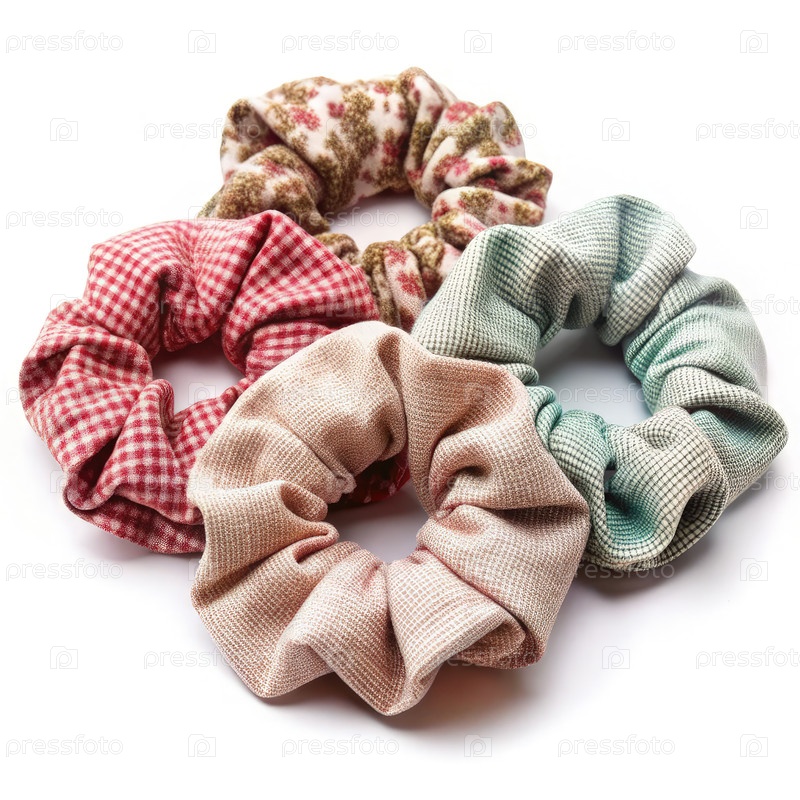 Красочные скрунчи для волос, отображаемые на белом фоне