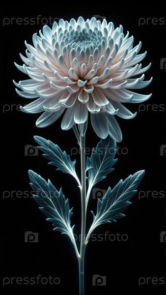 Цвет хризантемы молочного цвета отображается в рентгеновском стиле на черном фоне