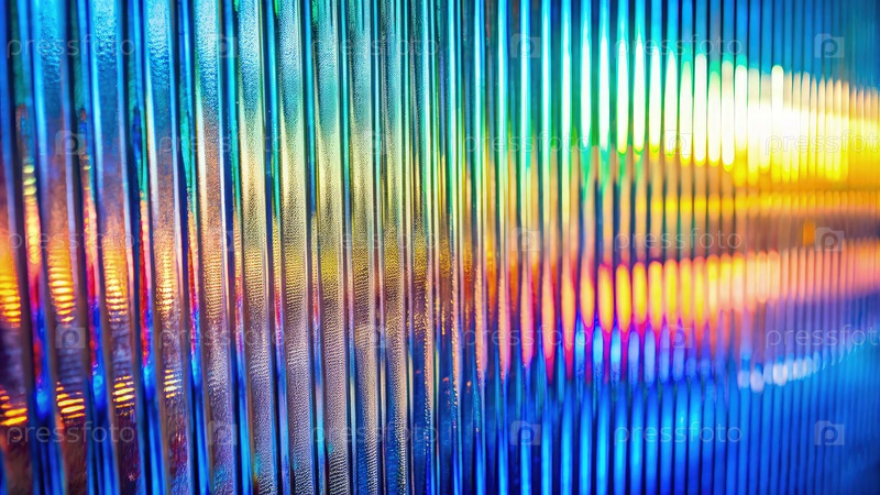 Увлекательные рисунки преломления света, созданные текстурированной поверхностью гофрированного стекла, отражающей различные цвета в полдень