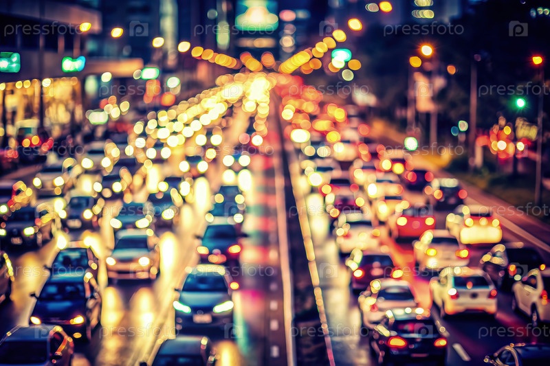 Vintage Tone Abstract Blur захватывает оживленные пробки на городских улицах в вечернее время