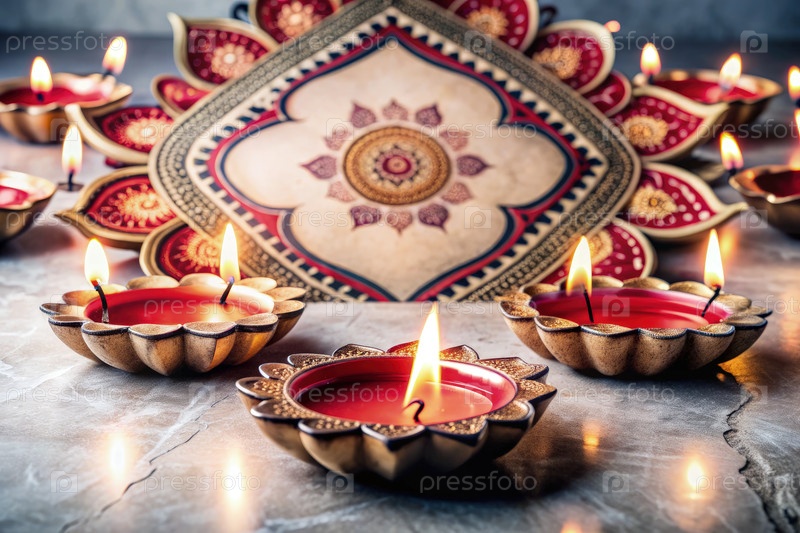 Вибрирующий баннер Дивали с светящимися масляными лампами на праздничном фоне