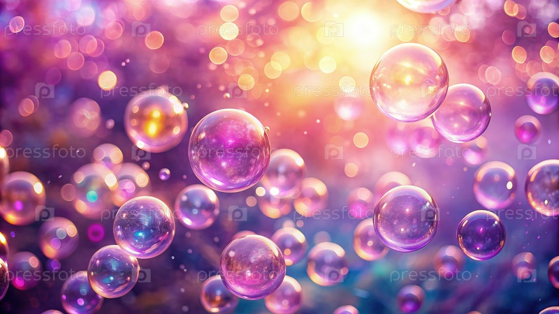 Плавучие мыльные пузыри в пастельно-розовых и фиолетовых оттенках на закате