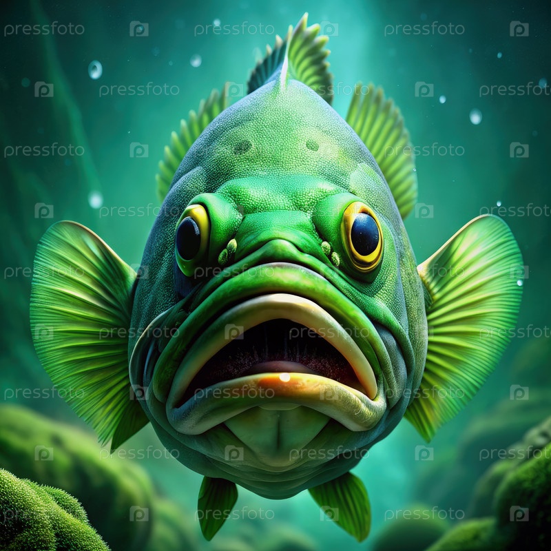 Зеленая рыба-террор плавает в спокойной подводной среде обитания в полдень