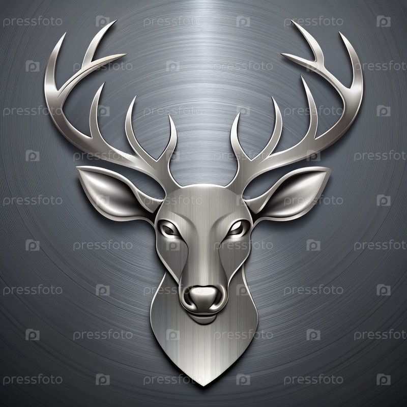 Стилизованная металлическая икона головы оленя на фоне кишеной стали