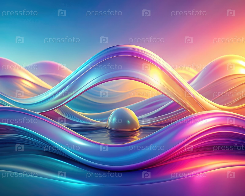 Формы жидких волн создают перекрывающиеся формы в ярких цветах на закате