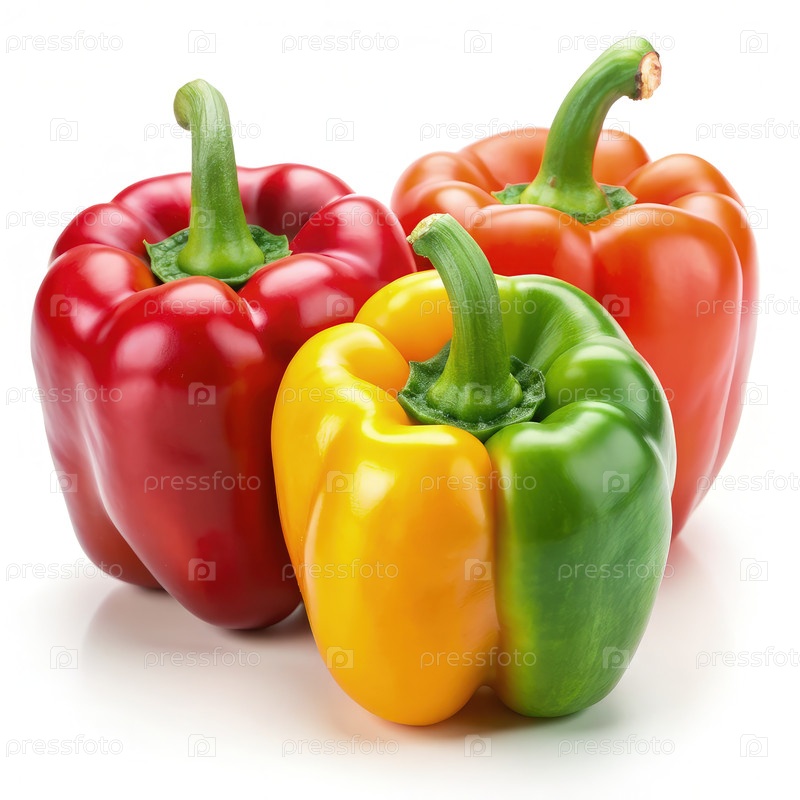 Свежие, яркие перцы показываются вместе на белом фоне для кулинарного вдохновения и здорового питания
