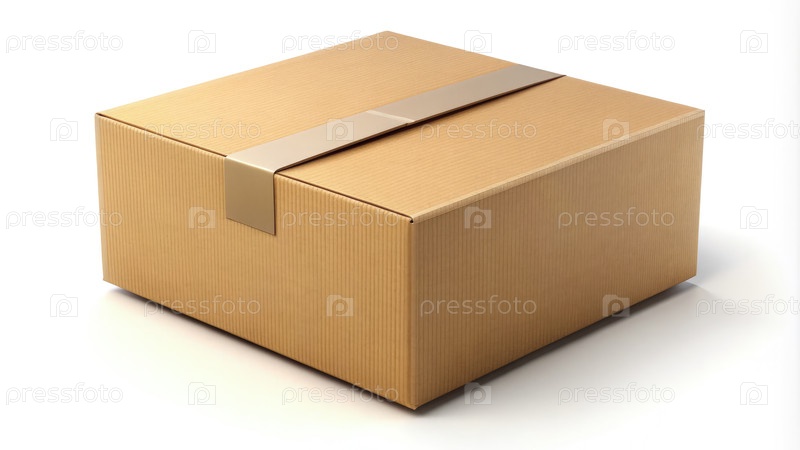 Пакет стандартного масштаба, завернутый в коричневую бумагу на белом фоне