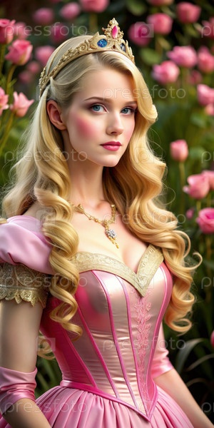 Завораживающий персонаж изящно стоит среди розовых роз в естественной обстановке