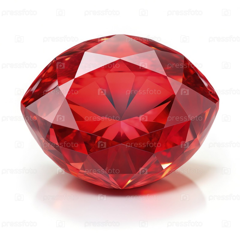 Красный рубин, опирающийся на гладкий белый фон, демонстрирует свой блеск