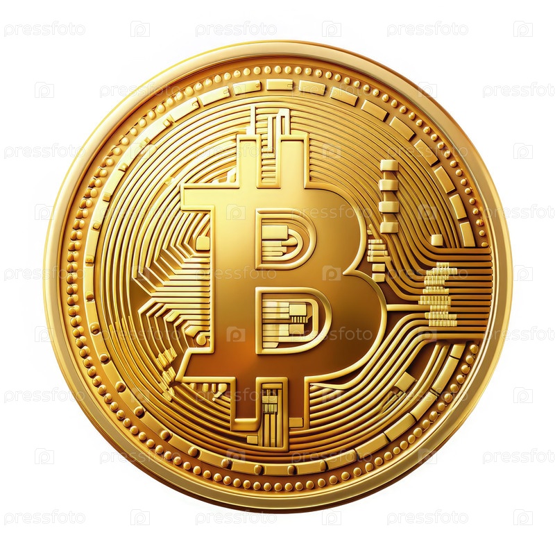 Золотая биткойн-монета со сложными схемами на гладком фоне