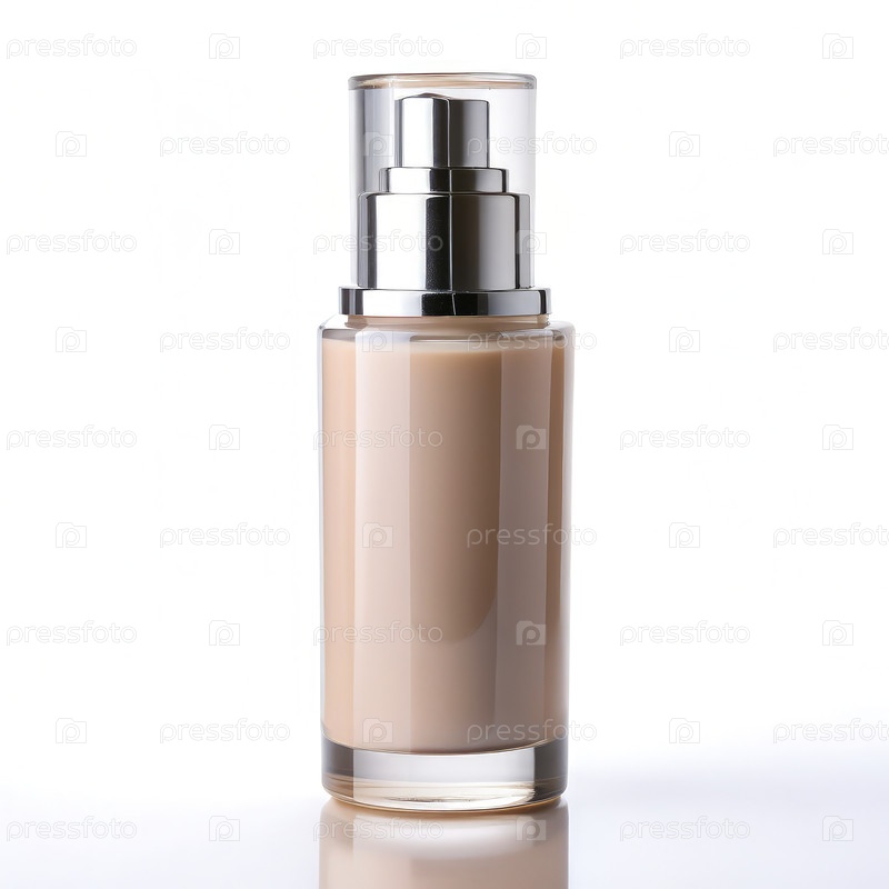 Элегантная бутылка с фундаментом, демонстрирующая легкий косметический продукт, предназначенный для безупречной кожи с изящным дизайном насоса