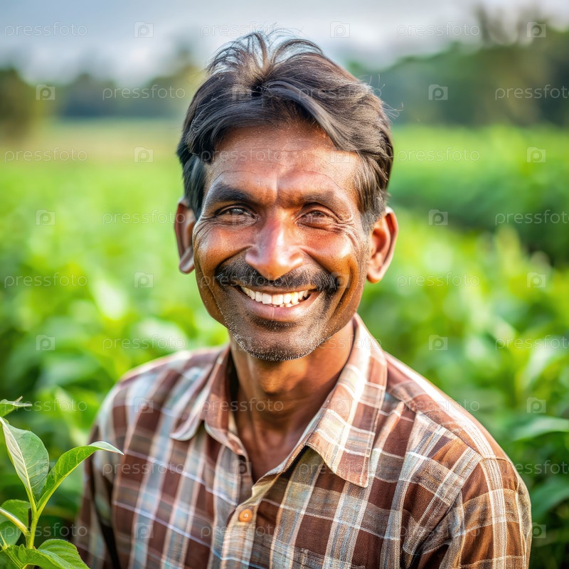 Раму гордо улыбается среди цветущих культур на своем поле