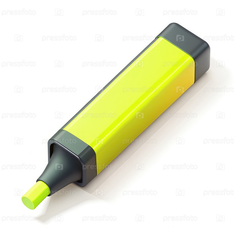 Ярко-желтый маркер, лежащий на плоской поверхности с гладкой отделкой