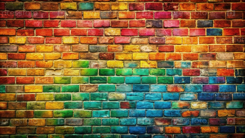 Многоцветная стена из старинного кирпича с текстурой гранжа в ярких оттенках