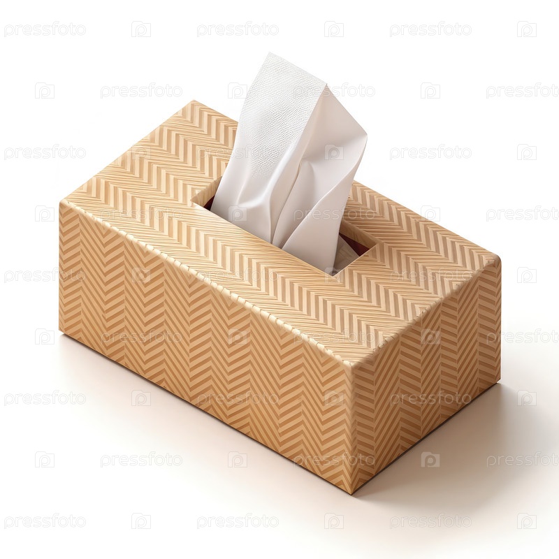 Стандартная картонная коробка с тканями для лица на чистой белой поверхности