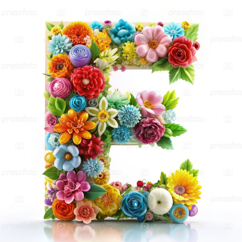 Творческая цветовая аранжировка в ярких цветах, образующих букву E на белом фоне